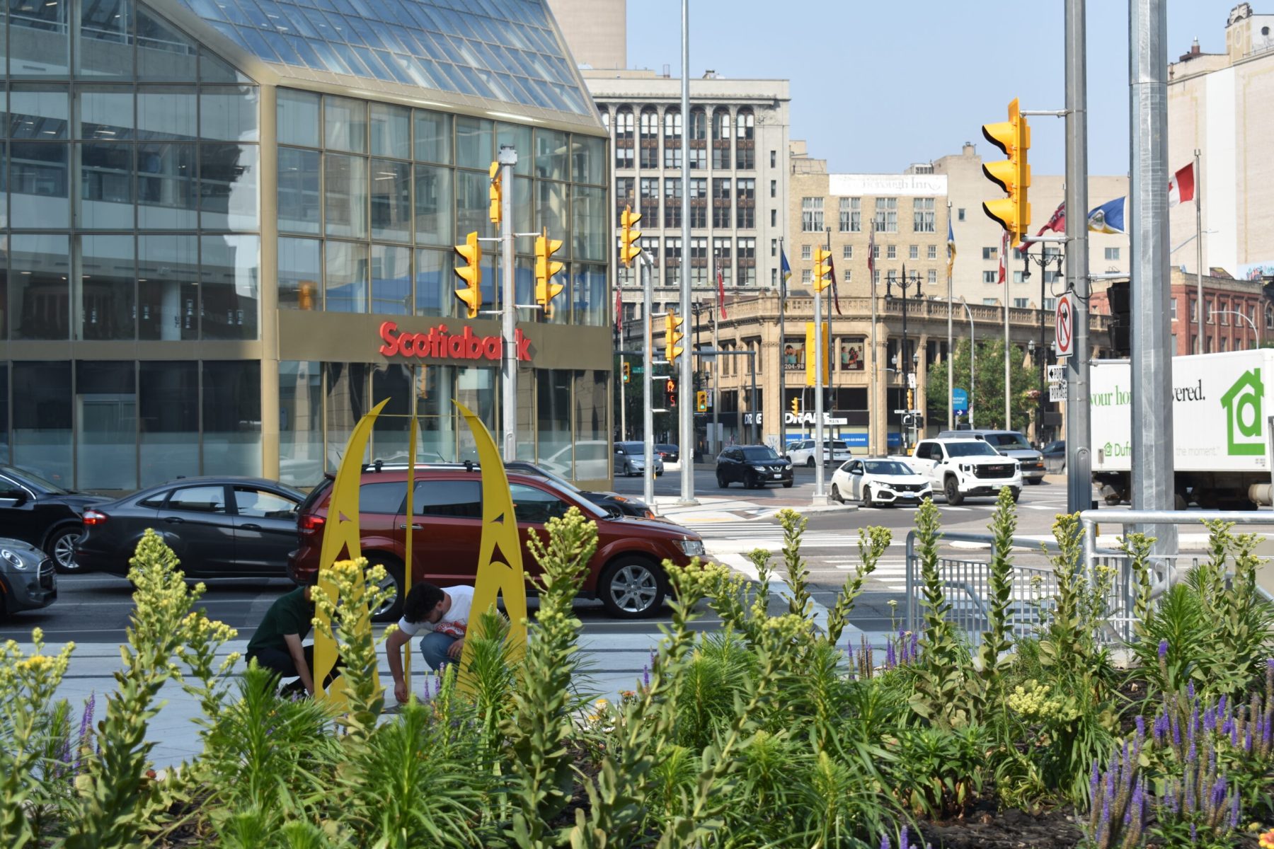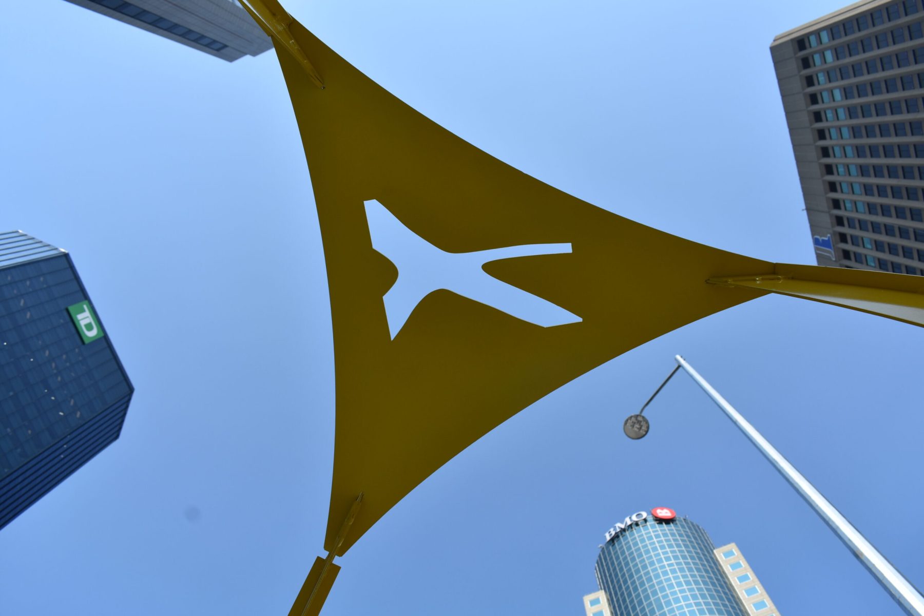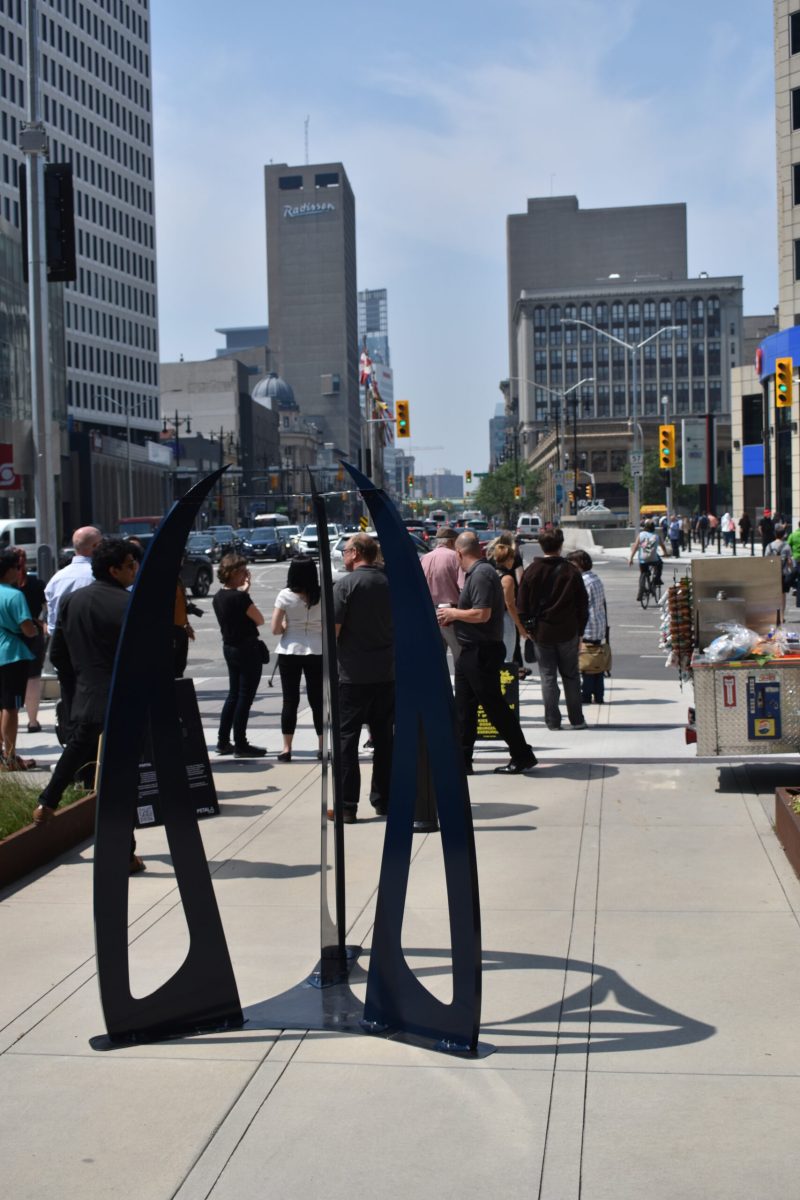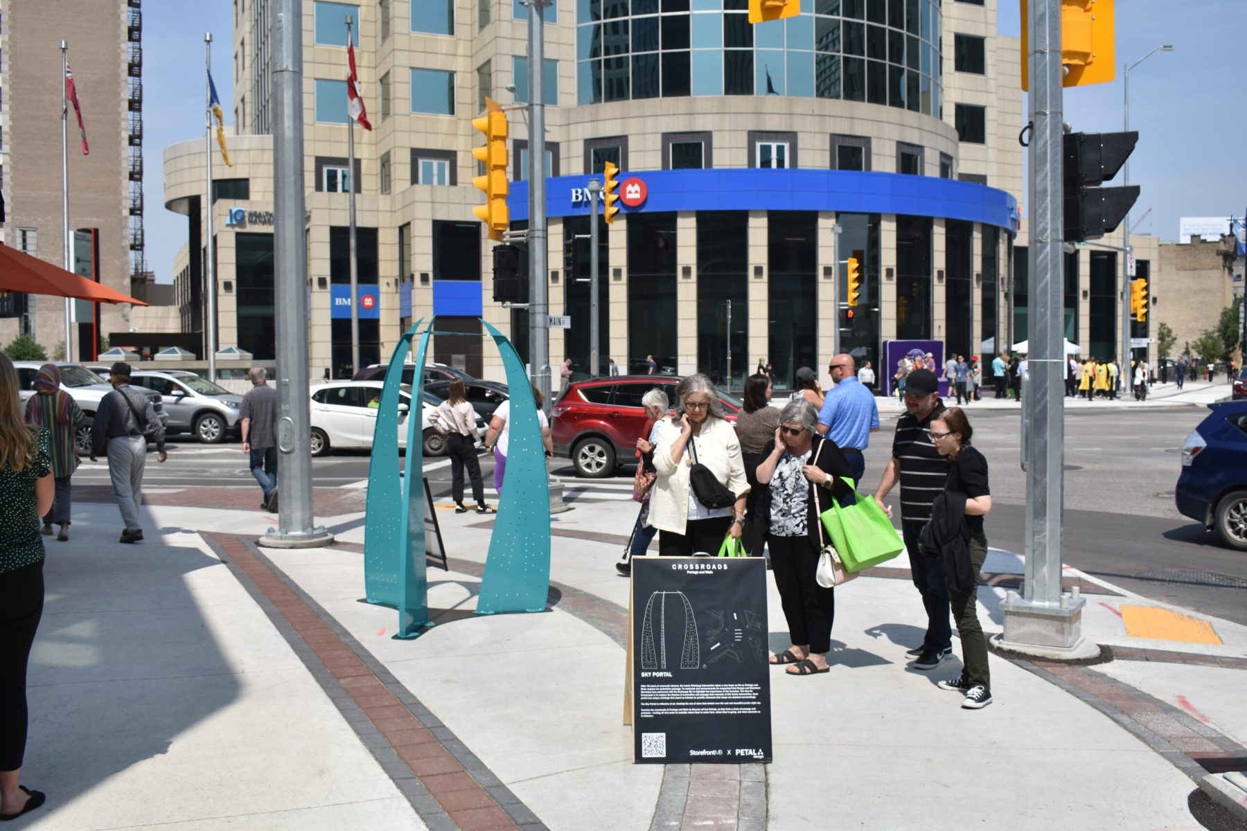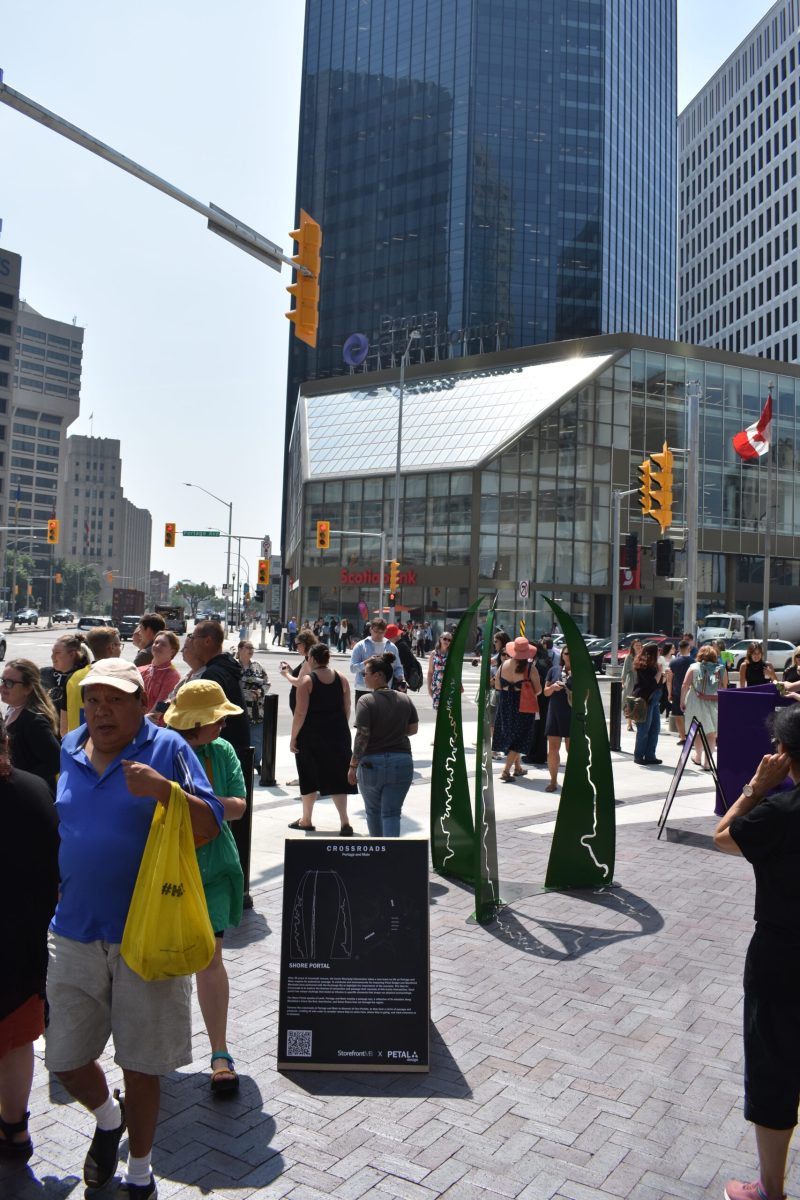 After 46 years of crosswalk closure, the iconic Winnipeg intersection takes a new lease on life as Portage and Main reopens for pedestrian walkways. To celebrate and commemorate its reopening Petal Design and Storefront Manitoba have partnered with the Exchange Biz to highlight the importance of the occasion. The idea for Crossroads is to explore both the connection and passage that this iconic intersection has presently, with the intention of provoking pedestrians to think about what these portals may represent, guiding them into various quadrants of the city. Each portal has unique etchings that stand as tributes to specific elements that shape our physical surroundings