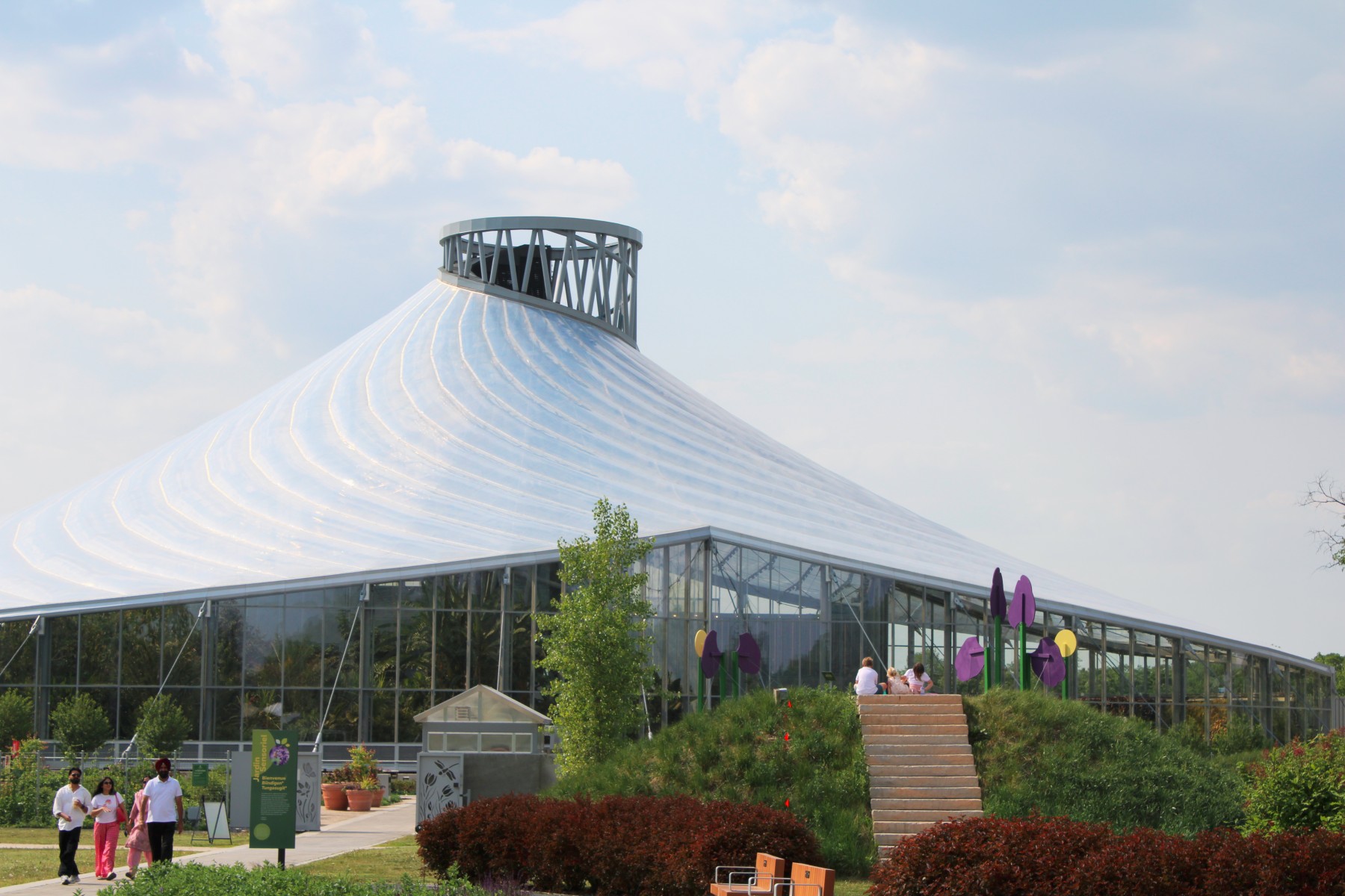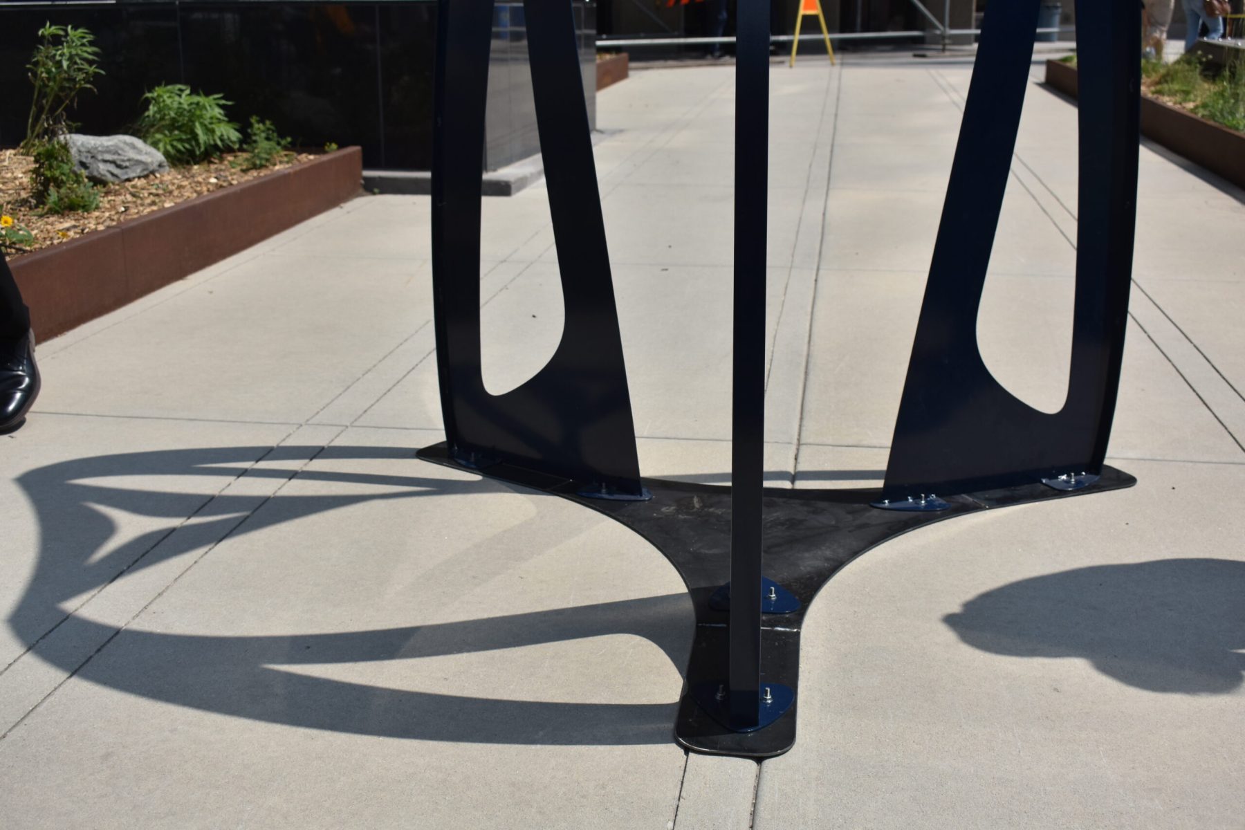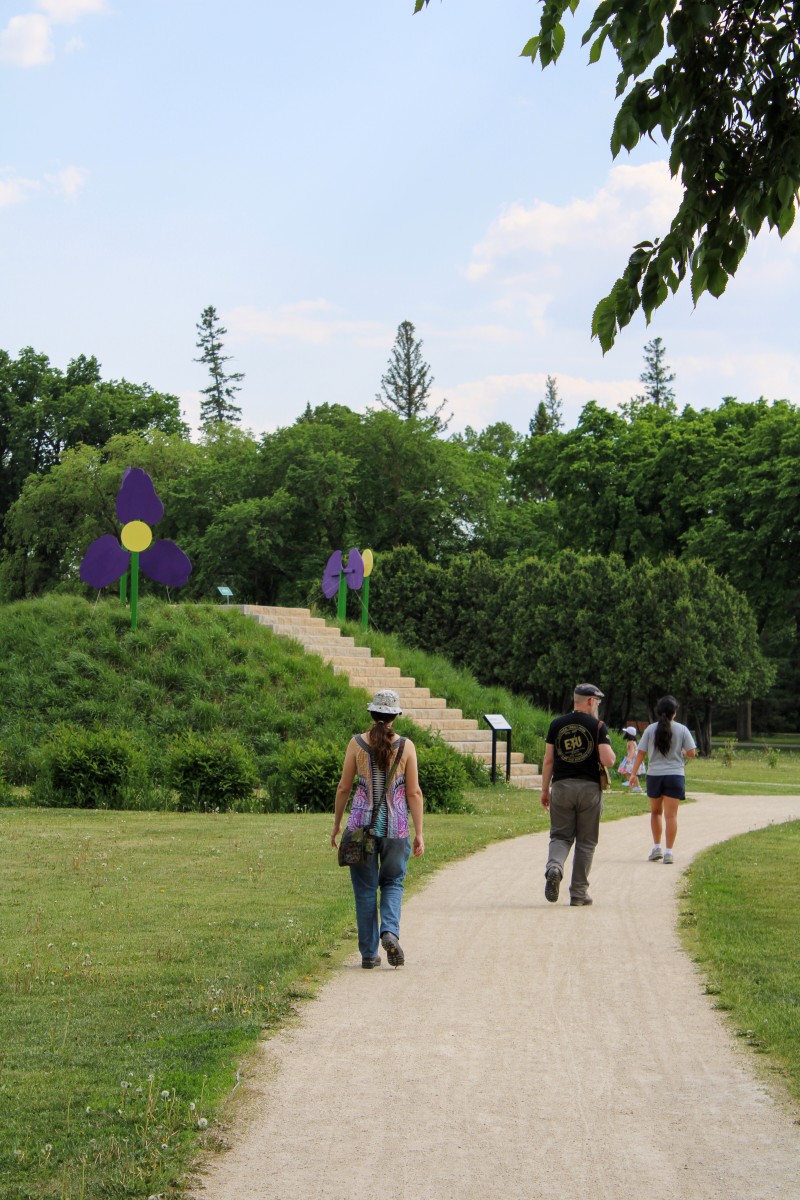 Petals in Perspective invites viewers to move around the gardens and wander on the knolls, and, in so doing, to discover flower pieces that appear whole when viewed from a particular position. The installation highlights two plant species native to Manitoba, the Prairie Crocus, Manitoba’s provincial flower, and the endangered Western Spiderwort. In the shadow of The Leaf and the presence of the Sensory Gardens, these structures stand tall, emphasizing the importance of these plant species. Petals in Perspective prompts viewers to question their decisions concerning habitat loss, while offering a playful way to create awareness about these flowers, the Spiderwort’s endangerment, and plant life cycles more broadly.